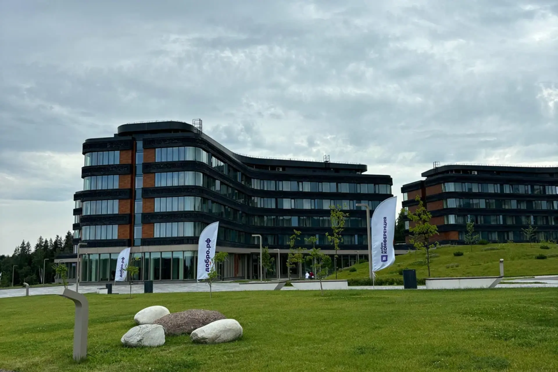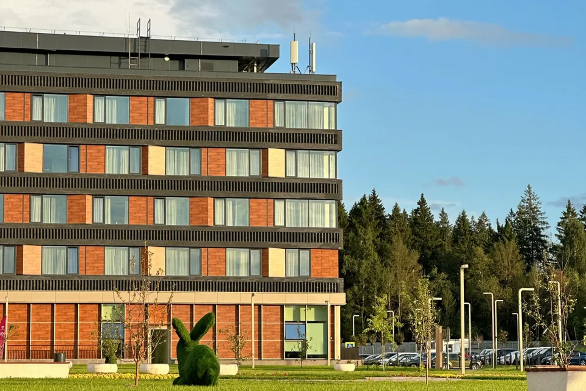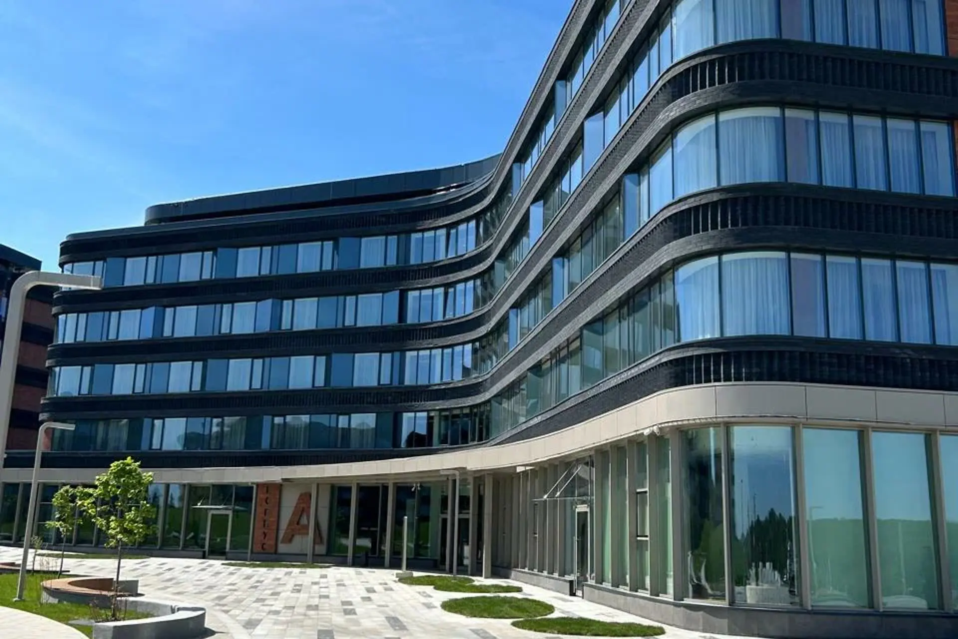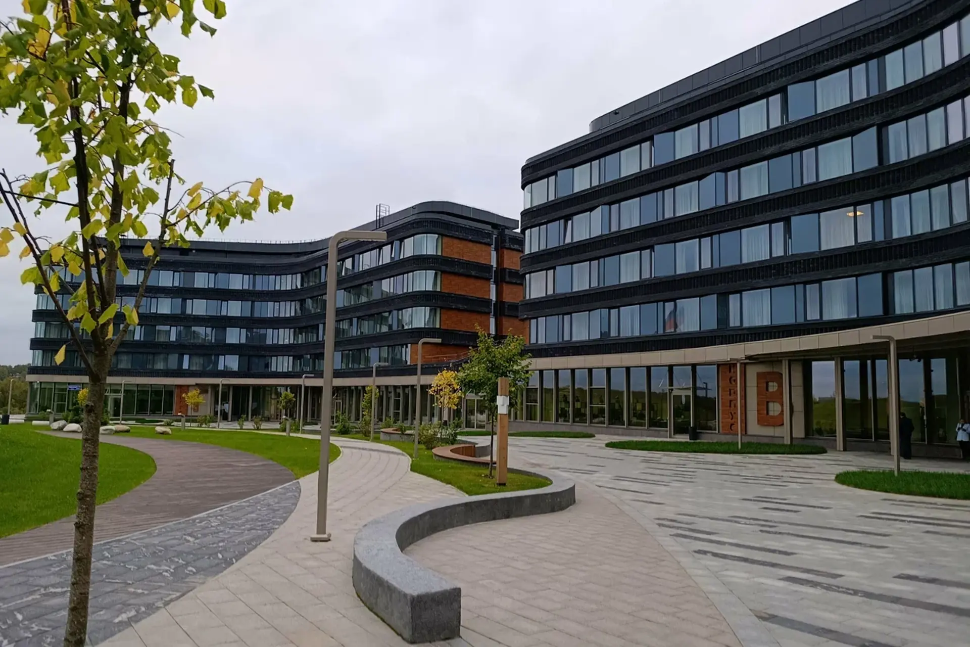 Облицовочный материал: кассеты из композита, бетонная плитка White Hills
