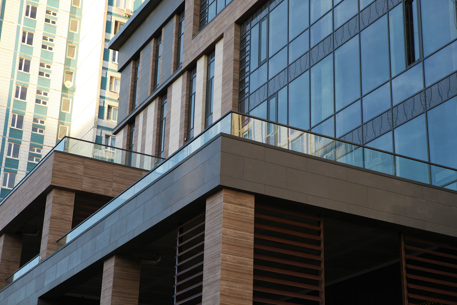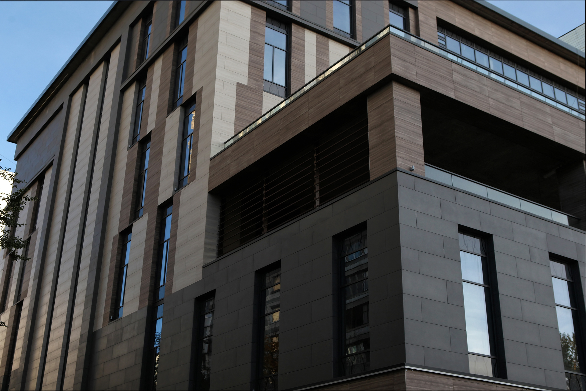 Облицовочный материал: керамогранит (скрытое крепление)