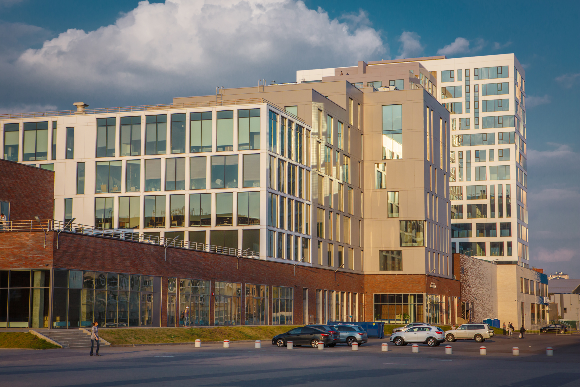 Облицовочный материал: HPL-панели, бетонная плитка White Hills