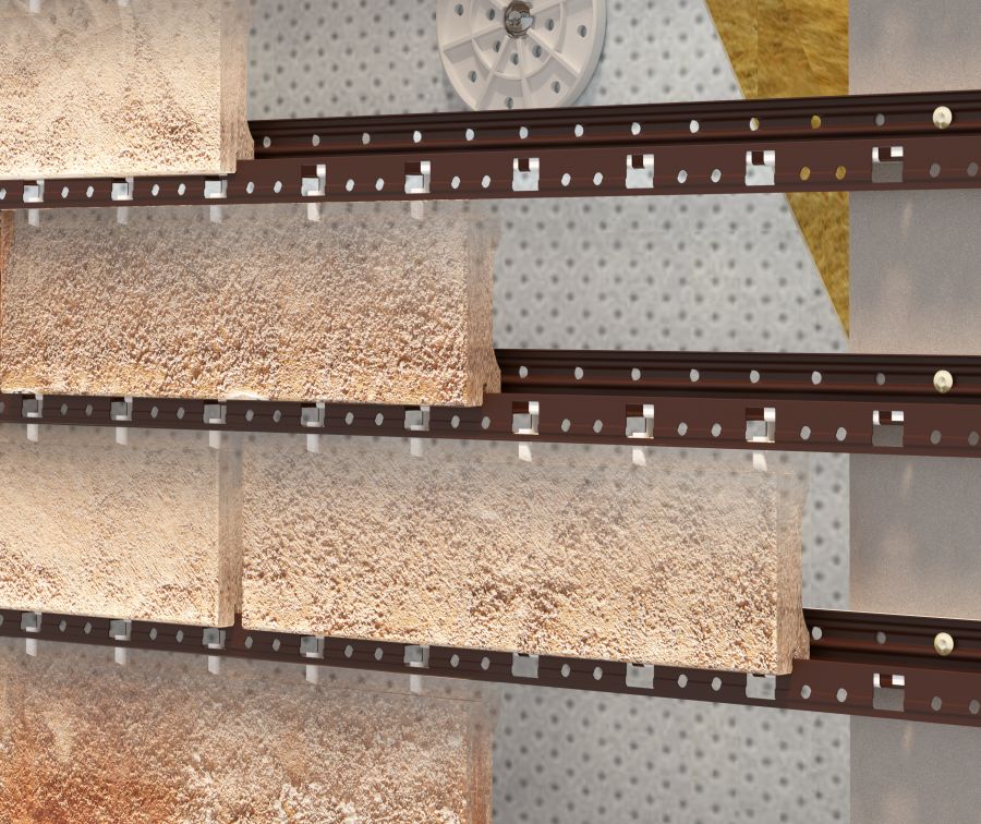 Особая запатентованная форма крепежного профиля позволила отказаться от применения перфоленты в горизонтальных швах — благодаря этому повысилась надёжность системы и уменьшилась трудоемкость монтажа.